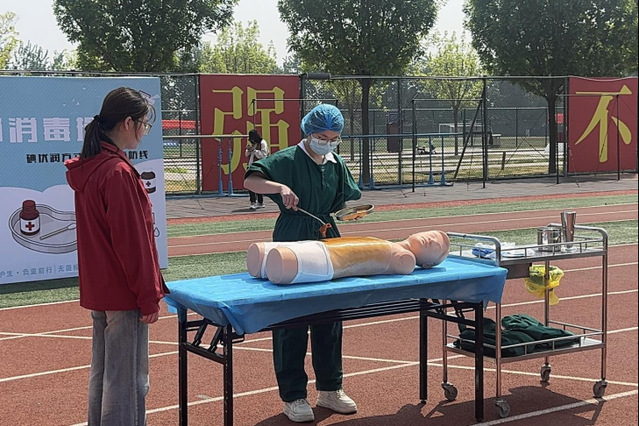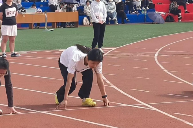 赛场上,运动健儿们全力以赴、奋勇拼搏,用汗水书写青春华章。短跑赛道上,青春力量迸发。李佳琳一骑绝尘,夺得女子100米第一名。男子800米赛场上,张京涛、闵博崖分别斩获第二名和第四名,在速度与耐力的双重考验中展现了顽强意志。女子三级跳远沙坑旁,王孜妍以稳健的节奏和强劲的爆发力,助跑、跨步、腾空、落地,一举夺得第一名,在沙坑中刻下拼搏的印记。50米龙舟比赛中,运动员们齐心呐喊、奋力前行,用团结的力量取得第一名。旱地冰球项目里,李宝毅、周扬刚在快速攻防间默契配合,勇夺桂冠。“桥心护生负重前行”环节,护理学子们负重前行、高效协作,规范完成每一个环节,荣获第二名,充分展现了专业素养与拼搏精神。健美操赛场上,同学们伴着明快的节拍,以整齐划一的动作、灵动舒展的姿态,展现了青春的蓬勃朝气,最终取得第六名的优异成绩。