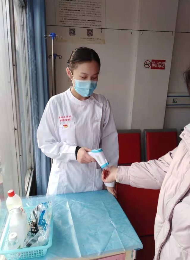 丁茹,在社区服务诊所,对外来人员测量体温,对扶梯及楼梯死角进行严格消毒灭菌,对于未带口罩者禁止入内,确保居民安全,她耐心地向外来人员宣传疫情防控的重要性,在社区利用所学知识,讲解七步洗手法的步骤及口罩正确佩戴的方法,呼吁大家尽量少出门,不聚集,不在人多的公共场所逗留,确保自身安全!