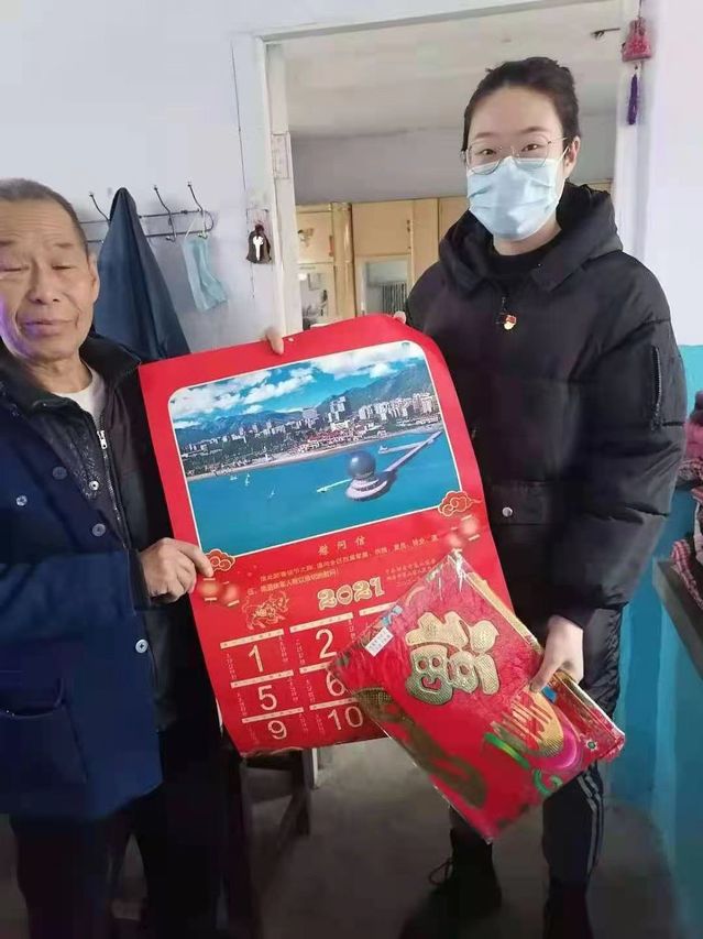 初伊,作为一个新青年,特别是以一个党员的身份,首先她积极响应当地的防疫号召,主动请缨担任疫情防控街道网格员,负责登记离烟返烟人员,其次作为一个护生,她充分利用自身专业知识和技能,积极的为来往人员普及疫情防控知识。在闲暇之余走访入户,用通俗的语言为村民介绍健康码的用途和出行的一些相关政策,并为退伍军人送慰问信和春联,给他们送上春节的祝福,希望在新的一年能够身体健康,平安喜乐!最后她表示:作为一名党员,要积极发挥自身优势,尽己所能为老百姓排忧解难,安心过年。