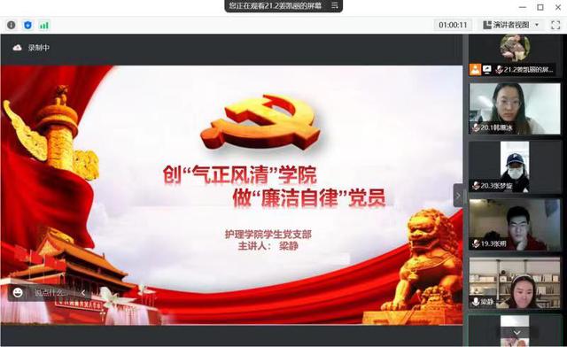 课上,党支部书记从党的廉洁建设历史发展以及学生党支部廉政风险点与防控措施出发,要求学生党员时刻绷紧廉洁自律这根弦,充分发挥在学生群体中的榜样作用,始终做到知敬畏、存戒惧、守底线,保持正直的个人作风。她还表示,学生党员作为学生群体中的模范代表,应当带头自觉加强党性修养,不断提升思想境界,从理想信念中获取拒腐防变的强大抗体,牢记党员身份,做一个立大志、明大德、成大才的时代青年。