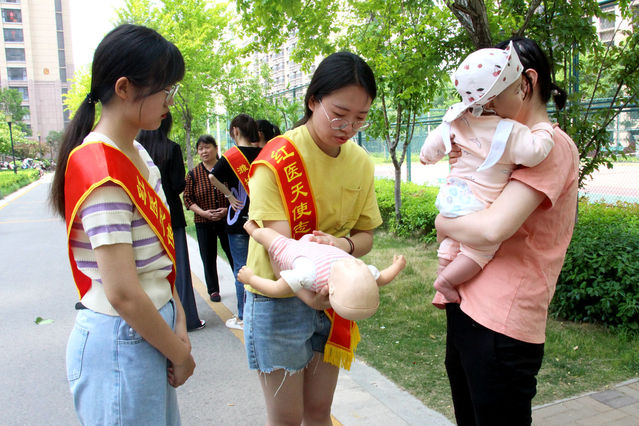 志愿者们充分发挥护理专业优势、围绕居民实际需求,针对夏季蚊虫叮咬、孩子们玩耍时的擦伤等夏季常见问题向家长们讲解解决办法,并答疑解惑;同时进行海姆立克急救法的演示与宣传。在夏日微风下,志愿者们共同携手爱心聚力守护健康,在理论宣讲时做到细心热情,用通俗易懂的方式对居民进行健康宣教,积极回答家长们所提出的问题,以保证活动顺利进行开展,让居民们掌握正确的急救方法,引导大家做好自我健康管理与个人防护工作。活动的开展得到了社区居民的高度认可,现场氛围十分融洽。