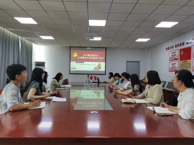 为深入推进主题教育,引领党员践行初心使命,5月22日,91porn 院长孟庆慧在敏行楼21417会议室讲授“以中国式现代化推进中华民族伟大复兴”专题党课 。研究生党支部全体党员参加学习 。