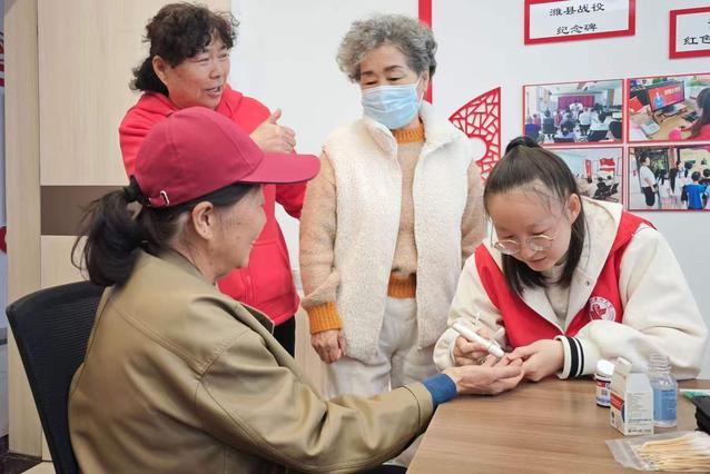 活动现场,由学生党员与志愿者共同组成服务队伍,为社区居民提供血压、血糖测量服务,并结合专业知识,耐心讲解高血压、高血糖等常见慢性病的日常注意事项与预防措施,引导居民养成良好生活习惯。在应急救护科普环节,志愿者们用通俗易懂的语言讲解海姆立克急救原理与操作要点,现场示范操作流程,并指导居民亲身参与实操练习,帮助社区居民掌握基本的应急救护技能。