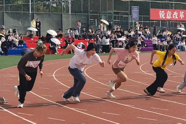 赛场上,运动健儿们全力以赴、奋勇拼搏,用汗水书写青春华章。短跑赛道上,青春力量迸发。李佳琳一骑绝尘,夺得女子100米第一名。男子800米赛场上,张京涛、闵博崖分别斩获第二名和第四名,在速度与耐力的双重考验中展现了顽强意志。女子三级跳远沙坑旁,王孜妍以稳健的节奏和强劲的爆发力,助跑、跨步、腾空、落地,一举夺得第一名,在沙坑中刻下拼搏的印记。50米龙舟比赛中,运动员们齐心呐喊、奋力前行,用团结的力量取得第一名。旱地冰球项目里,李宝毅、周扬刚在快速攻防间默契配合,勇夺桂冠。“桥心护生负重前行”环节,护理学子们负重前行、高效协作,规范完成每一个环节,荣获第二名,充分展现了专业素养与拼搏精神。健美操赛场上,同学们伴着明快的节拍,以整齐划一的动作、灵动舒展的姿态,展现了青春的蓬勃朝气,最终取得第六名的优异成绩。