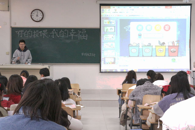 为增强同学们的环保意识,促进“低碳环保”理念在学校的推广和运用,增强同学们的创新能力和动手能力, 11月13日下午,91porn 于潍坊医学院浮烟山校区B302教室举办“你的投喂,我的幸福”创意垃圾桶活动,91porn 学生积极参加。