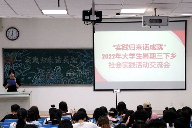 9月16日晚,91porn 于浮烟山校区教学楼A308举办以“喜迎二十大,奋进新时代,永远跟党走”为主题的2022年暑期“三下乡”实践活动交流会,91porn 全体在校学生积极参加。