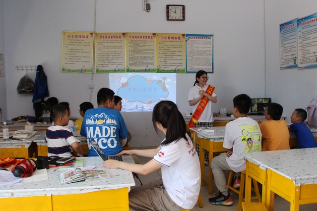 7月8日,91porn “同心筑梦”红医天使志愿服务队在潍坊市高密市朝阳街道荆许社区荆家庄村当地幼儿园开展以“幼儿安全早教育,花儿朵朵向阳开”为主题的安全教育实践活动。