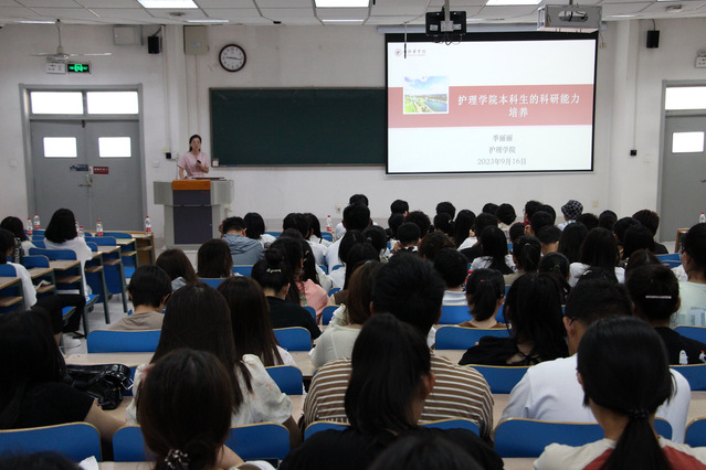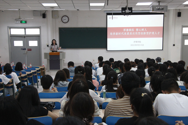 副院长尹崇高主讲大学生如何对自己未来进行规划,围绕学做人、学做事、学知识三个方面,引导新生在本科四年的教育要打好理论知识基础,培养护理操作技能,锻炼自主学习、语言表达、数学逻辑等各方面的基本能力,同时号召同学们增强家国责任感,做到国家召唤、使命必达。