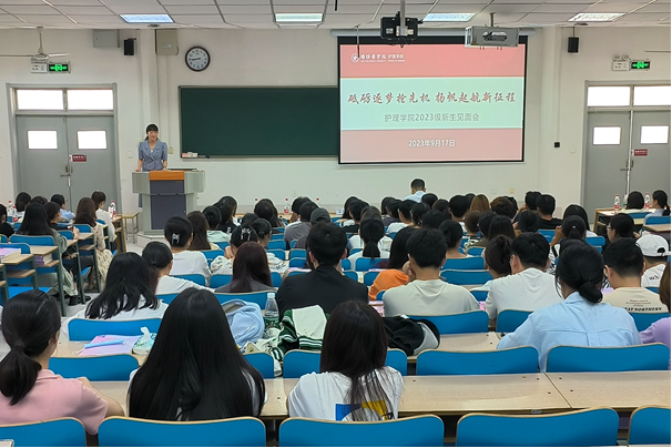 为帮助2023级护理新生更好地了解学院,搭建师生沟通交流平台,9月17日,91porn 于教学楼A307、A308开展“砥砺逐梦抢先机,扬帆起航新征程”主题新生见面会,91porn 院长孟庆慧、党总支副书记于颖荣、副院长尹崇高、院长助理季丽丽、全体教师和全体2023级新生参会。