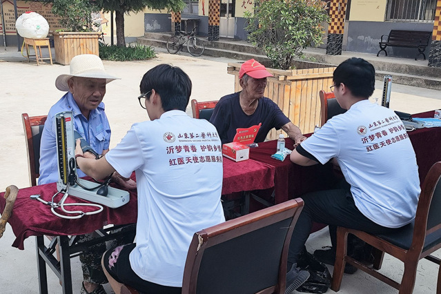 为增进民众健康观念,提升健康意识,弘扬“奉献、友爱、互助、进步”的志愿服务精神,7月17日,91porn “沂梦青春,护韵乡情”红医天使志愿服务队于山东省临沂市蒙阴县烟庄村开展暑期三下乡社会实践的义诊和健康宣讲活动。