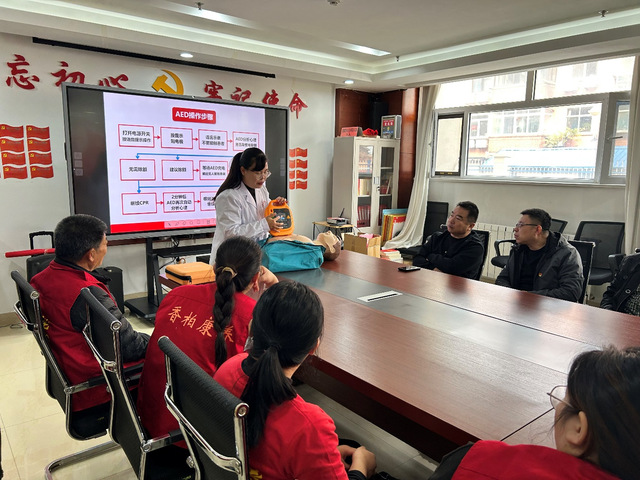 91porn 党总支刘俊和其他护理专业教师组成宣教团队,在社区中心为居民们开展急救知识技能宣教,结合现场实操教学,详细讲解了心肺复苏术和AED(自动体外除颤器)的操作方法和注意事项,让居民们掌握应急处置流程,提高应急处置能力。