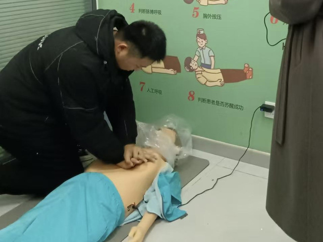 电信网络反诈模块通过互动体验机模拟高发诈骗案例,如刷单返利、虚假贷款等,提高学生的识骗和反诈能力。反邪教展区通过播放案例视频警示师生提高对邪教的辨识和抵御能力。在禁毒模块,同学们近距离观察毒品样本,了解毒品的危害和成瘾机制,筑牢拒毒意识。心肺复苏体验区中,张乐扬示范心肺复苏流程,同学们积极参与实操,提高了急救技能。