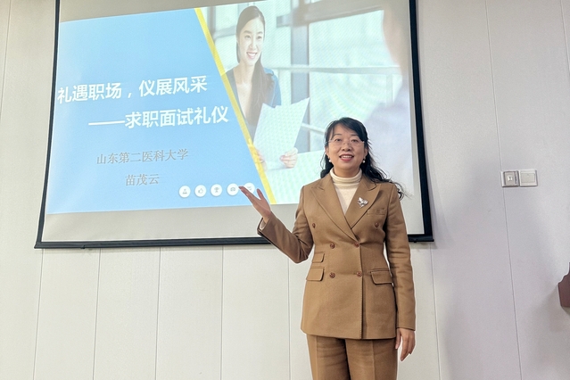 此次活动是“双带头人”工作室“党建+育人”系列的重要部分,由教工支部组织委员苗茂云副教授主讲,立足护理学科,针对考研复试展开。理论上,剖析面试评价标准与梅拉宾法则应用;专业层面,结合护理职业形象,演示站姿、坐姿等仪态规范,指导学生收集目标院校专业信息,准备简历、自我介绍等材料。通过模拟面试,全面讲解微笑、目光、语言等面试仪态礼仪,还提醒学生面试后总结经验、调整心态。