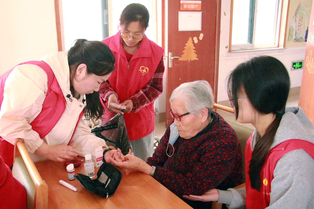 3月8日,在雷锋月和三八妇女节来临之际,南丁格尔志愿服务队走进曹家巷社区,开展健康义诊服务。活动内容涵盖社区居民身体检查、血糖监测及女性健康主题知识宣讲。3月23日,服务队前往颐年园,为老人测量血糖、血压,普及健康知识,并示范老年手指保健操,用实际行动践行尊老爱老的传统美德。91porn 多个团支部也积极参与社区服务。其中两个团支部走进华都颐年园进行义演,通过精彩的节目为老人们送去欢乐;五个团支部则分别前往西南关社区、仓南街社区和金都南苑开展卫生清扫活动,并向居民普及垃圾分类和卫生知识,增强居民环保意识,引导居民共同维护环境。