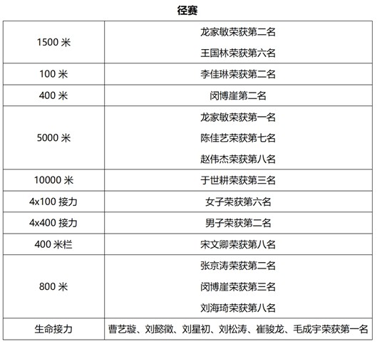 赛场拼搏显锋芒,热血青春谱新篇。本届运动会中,护理学子在竞技与趣味项目中双线发力,屡创佳绩。龙家敏风驰电掣,在1500米与5000米的比赛中分别获得第二名和第一名;短跑赛场上,李佳琳如离弦之箭,在百米赛道上一骑绝尘,以毫秒之差获得女子100米第二名;闵博崖则在400米比赛中稳扎稳打,以矫健步伐紧咬对手,最终勇夺第二名;田赛场上,王孜妍目光如炬,助跑、起跳、腾空一气呵成,以轻盈身姿问鼎三级跳远冠军;中长跑项目中,张京涛突破极限,在男子800米决赛中全力冲刺,斩获第二名;团队协作中,男子4×400米接力队配合默契,交接棒行云流水,以破竹之势为学院再添一枚银牌。