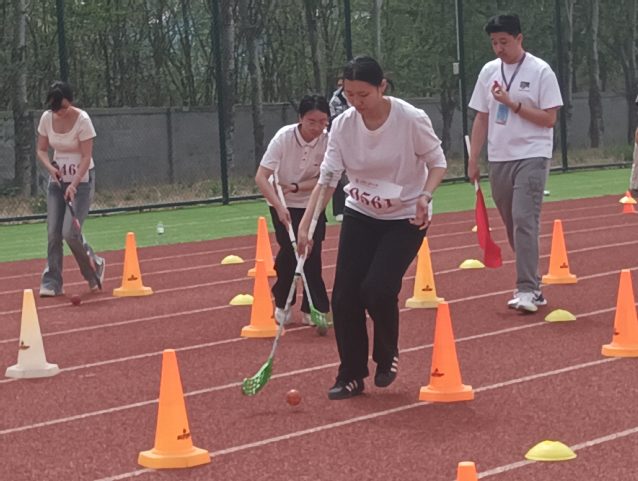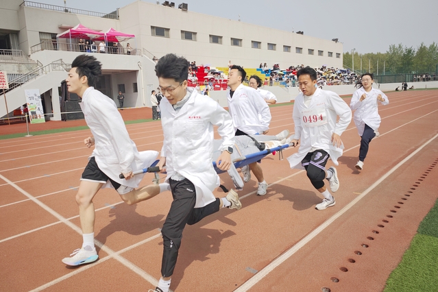趣味赛场同样精彩纷呈,50米旱地冰球、50米袋鼠运瓜接力、齐心协力项目成员稳扎稳打,凭借策略与协作力压群雄,斩获第一,50米龙舟获得第二名。观众席上“护理,加油!”的呐喊声如潮涌,与赛场上矫健的身影交相辉映,奏响青春最强音。
