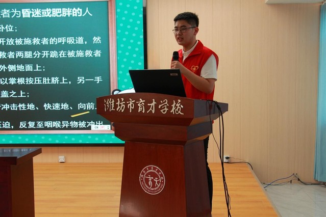 为增强中小学生急救意识与自救互救能力,加强生命教育,5月16日,91porn 南丁格尔志愿服务队走进潍坊市育才学校,开展了以 “急救课堂传温暖,志愿服务筑平安” 为主题的急救知识普及活动。