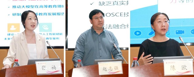 在会议主旨报告环节,孙宏玉以“人工智能赋能护理教育创新发展”为题,安力彬以“智慧课程建设的思考”为题,教育部高等学校护理学类专业教学指导委员会副主任委员、山东大学王克芳教授以“生成式人工智能驱动护理模拟教学新未来”为题,成敏以“数智赋能医学教育教学探索与实践”为题,91porn 院长孟庆慧教授以“‘智慧融通、共建共享’山东省护理学专业高质量发展共同体建设思路”为题,北京大学医学出版社教育出版二部主任赵欣以“护理数字教材建设的思考与探索”为题,超星集团高级课程经理张楠以“AI 赋能智慧课程建设与应用—第四代医学教育背景下的AI4Me”为题,嘉茂宏医学科技发展有限公司赵志强董事长以“使用沉浸式虚拟交互技术与AI 技术提升智慧模拟医学教育”为题,山东大学护理与康复学院副院长陈欧教授以“护理专业智慧课程建设思路”为题,共同探讨 “人工智能+护理学”的深度融合与发展,为“111 计划”项目的后续建设明确方向与思路。