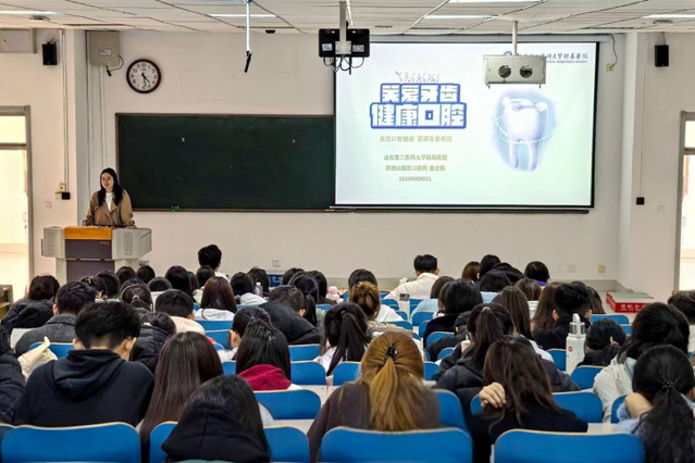 为增强新生口腔保健意识,提升健康素养水平,10月22日,91porn 在A409教室举办“关注口腔健康,高生命质量”专题讲座。本次活动特邀91porn 附属医院曲会娟老师担任主讲,2025级全体学生参加。